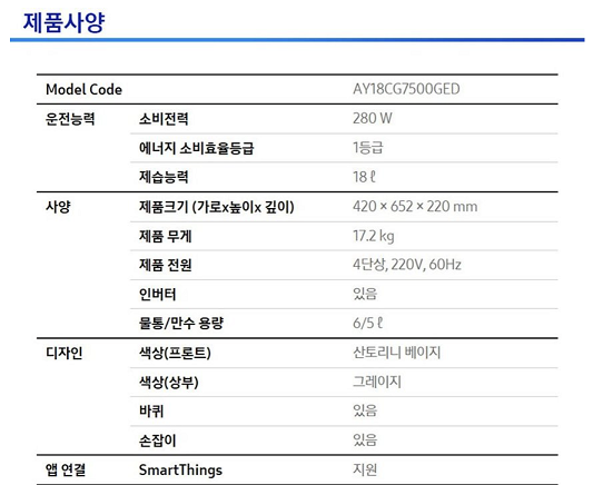2. 삼성전자 인버터 18리터제습기 (AY18CG7500GED)